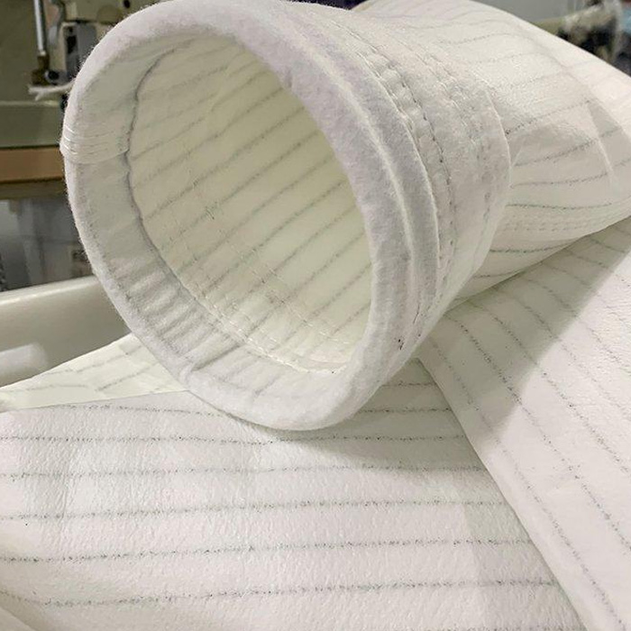 涤纶针刺毡除尘布袋是采用非织造针刺工艺利用纤维交错排列,空隙分布均匀的细纤维布,以涤纶短纤维与涤纶有捻纱所生产的针刺毡表面经热轧、烧毛、或涂层等后处理,使其表面平整光滑,不易被粉尘所堵塞,此滤料空隙率大,透气性能较好,用途为广泛,抗化学稳定性强,不仅可以过滤常温气体,而且可过滤含有酸碱的腐蚀性气体,并可滤水、滤油、是常温工况,液固分离等理想的过滤材料。
